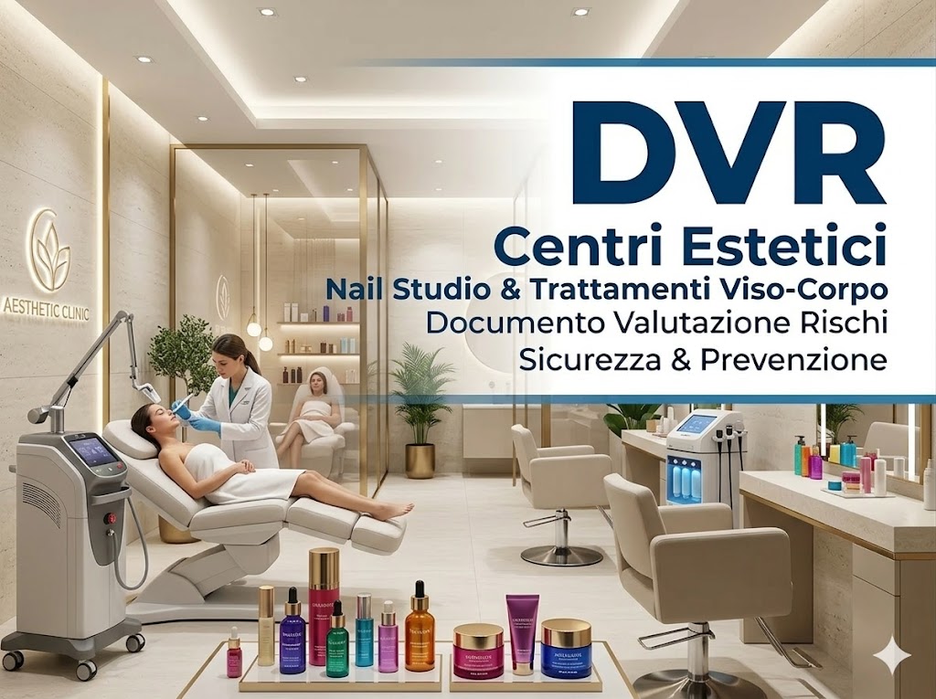 Il DVR valuta i rischi legati a prodotti chimici cosmetici, attrezzature elettriche, lampade UV, postura di lavoro, igiene e sicurezza dell’ambiente.